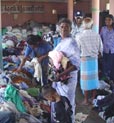 This girl lost her parents and all known relatives in the killer wave, and has been mute ever since. She is in a Hindu temple converted into a shelter for some of the hundreds of thousands of people left homeless by the tsunami. |