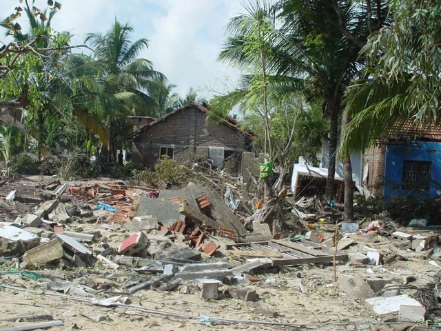 Click to enlarge Picture Houses reduced to rubble by the tsunami, Batticaloa, Sri Lanka |
